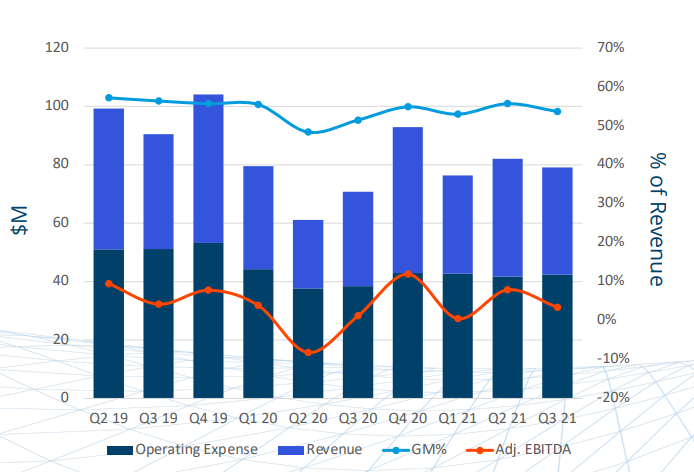 Third-quarter results demonstrate continued strength in growing our market. Stratasys reported a 24.3 % increase in revenue, in the third quarterly report. The below chart shows the quarterly breakdown of revenue in $ million. Revenues have been consistently rising. But Stratasys remains an unprofitable operation.
