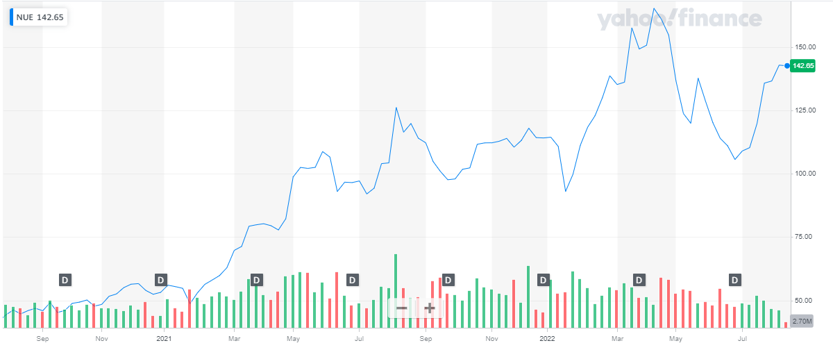 Nucor has a market capitalization of $ 37.4 billion. Its share is trading at a price of $ 142.65. The stock of Nucor has been on an upward trend, despite being slightly volatile, for the past two years.