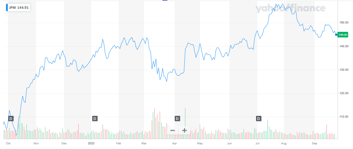 JP Morgan has a market cap of $ 421.7 billion. Its shares are trading at $ 145.1. The stock of the company has been on a bullish journey for the past year. The stock started the year 2023 at $ 101.85. Throughout the year, the stock maintained its bullish journey and last closed at $ 145, representing a 30 % appreciation to date.