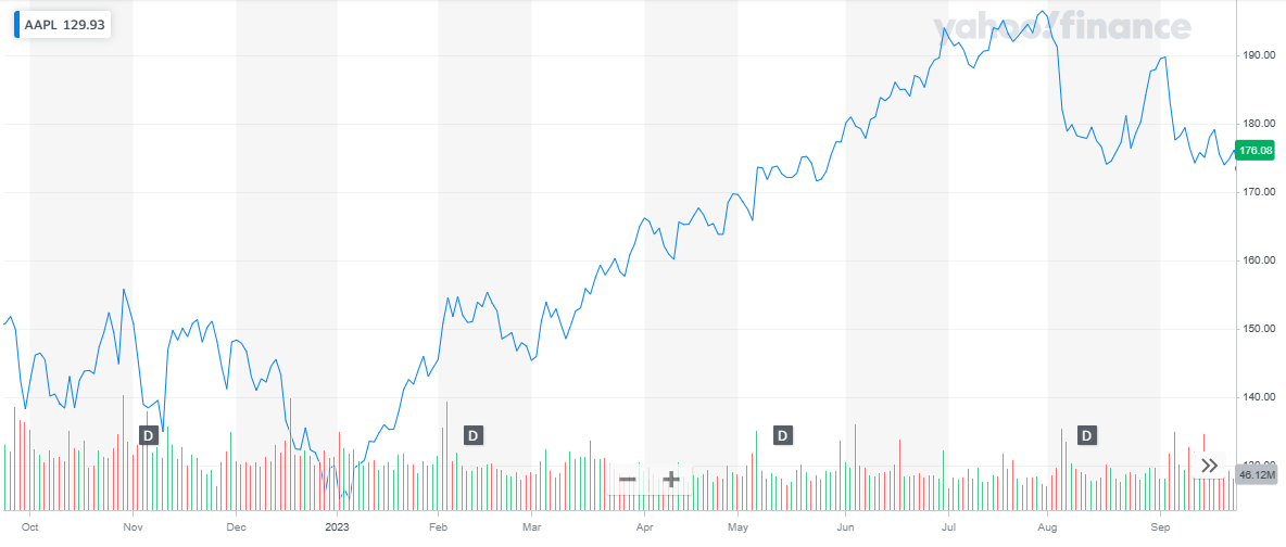 Apple has a market cap of $ 2.72 trillion. Its stock is trading at $ 173.49. The stock has been on a bullish journey since the start of the year. From a price of $ 129.93, at the start of the year, the stock went as high as 196.45 during the year. Eventually, the stock last closed at $ 176.08 representing a 26 % appreciation during the year.