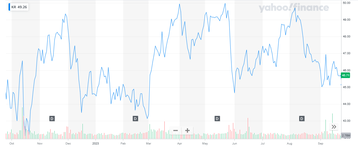 Kroger has a market cap of $ 32.6 billion. Its shares are trading at $ 45.31.