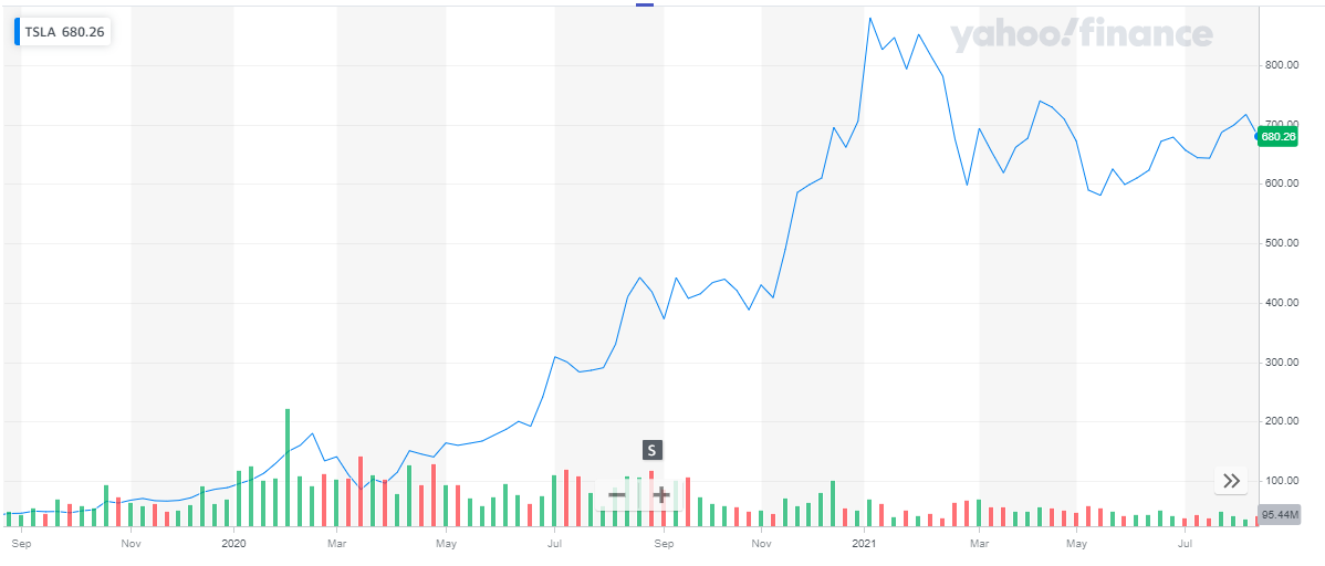 Tesla has a market valuation of over $673 billion. Its stock is currently trading at around $680.