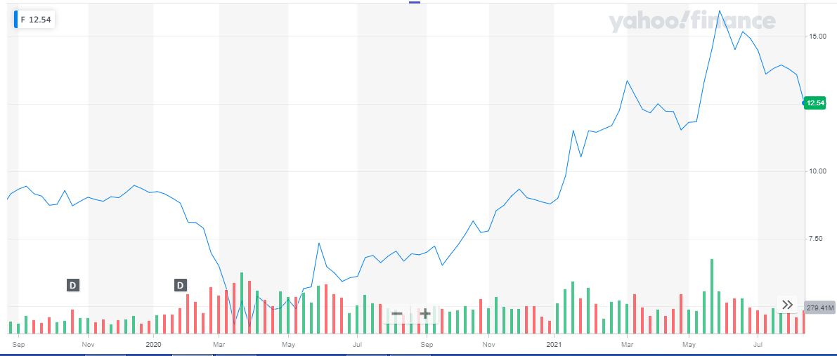 Ford Motor is currently values at $50 billion and its share is trading roughly at $12.55.
