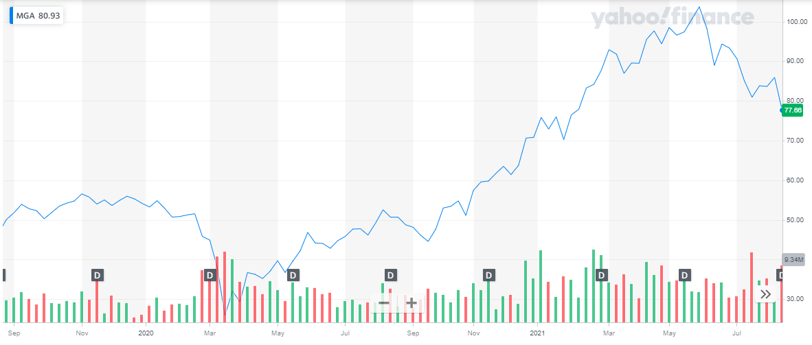 The market capitalization of Magna is at $23 billion. The stock of the company is currently trading at $77.66.