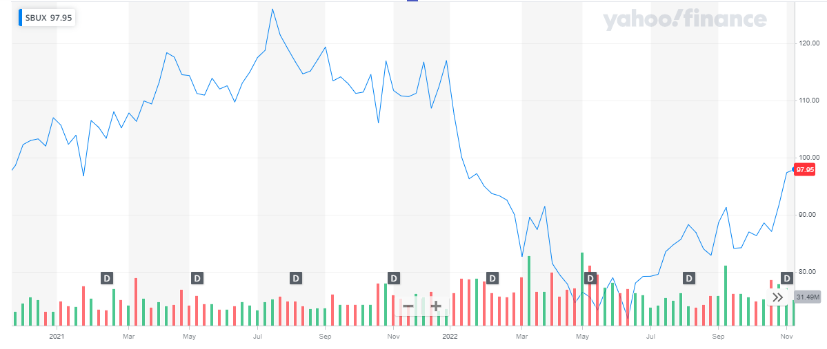 Starbucks has a market cap of $ 112 billion. Its shares are trading at $ 97.95.