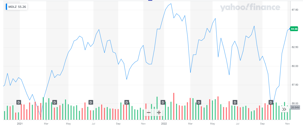 Mondelez Inc has a market cap of $ 88.75 billion. Its shares are trading at $ 64.99. The share of the company has been volatile in the past two years. It started the year 2021 at $ 58.47, went as low as $ 53.16, and closed off the year at $ 66.31. Overall, the stock appreciated by 13.4 %.