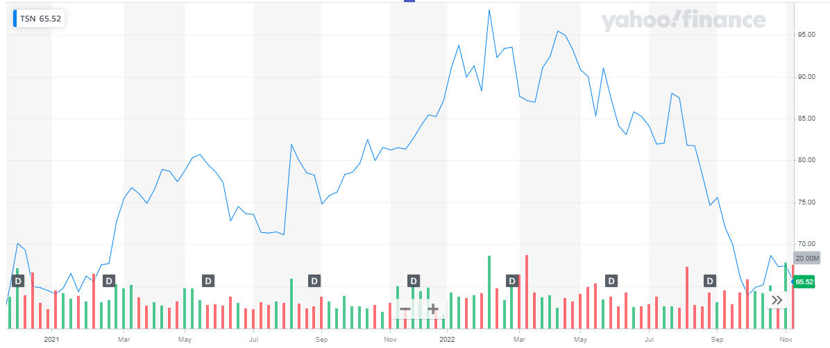 Tyson Foods has a market cap of $ 25.6 billion. Its shares are trading at $ 65.52.