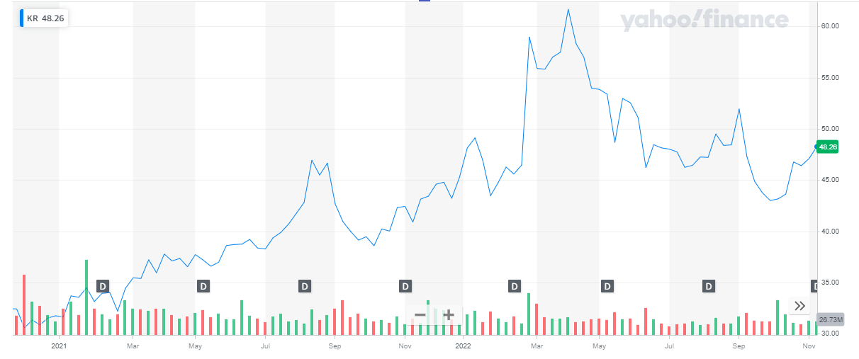 Kroger has a market cap of $ 34.5 billion. Its shares are trading at $ 48.26.