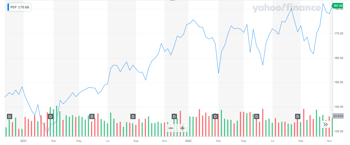 PepsiCo has a market cap of $ 250 billion. Its shares are trading at $ 181.33. The share of the company has been on a bullish streak since last year. It started the year 2021 at $ 148.3 and closed off the year at $ 173.71. Overall, the stock appreciated by 17 % during the year.