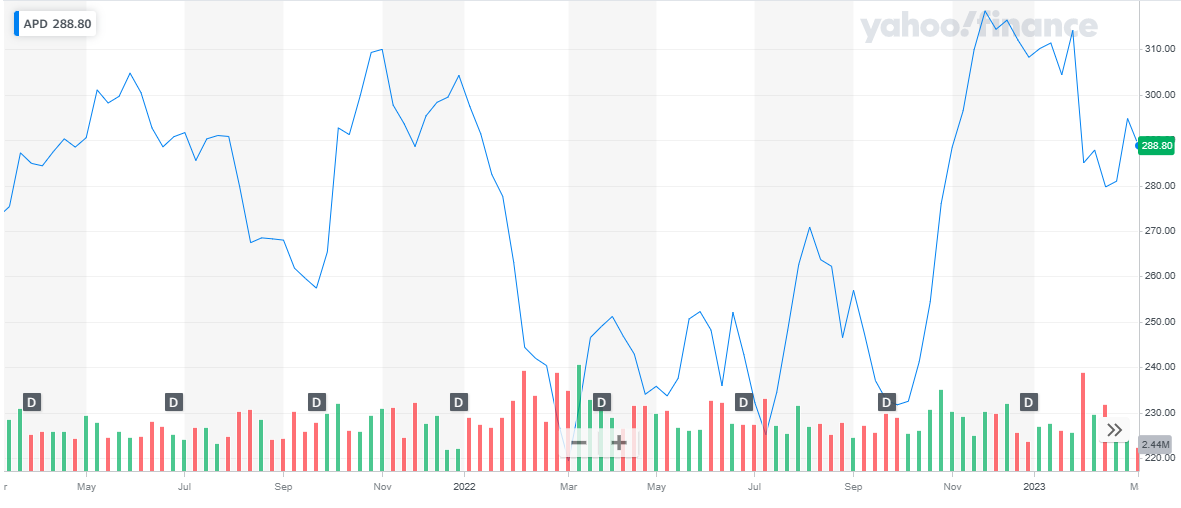 | 10 | Air Products & Chemicals Inc | APD | $ 290.04 | $ 64.13 billion |