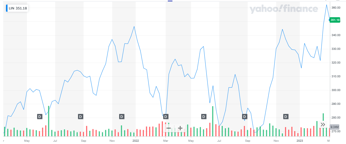Linde Plc has a market cap of $ 173.13 billion. Its shares are trading at $ 354.9.