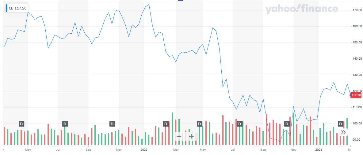 Celanese recently reported its full-year financials for FY 2022: