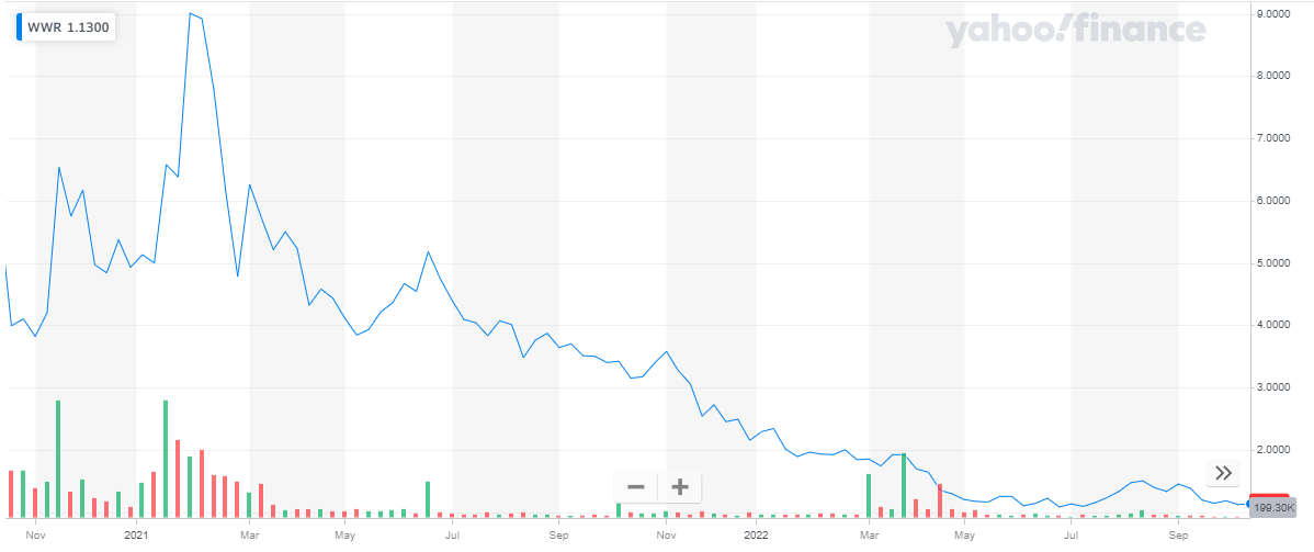 Westwater Resources Inc. has a market cap of $ 52.9 million. Its shares are trading at a price of $ 1.12.