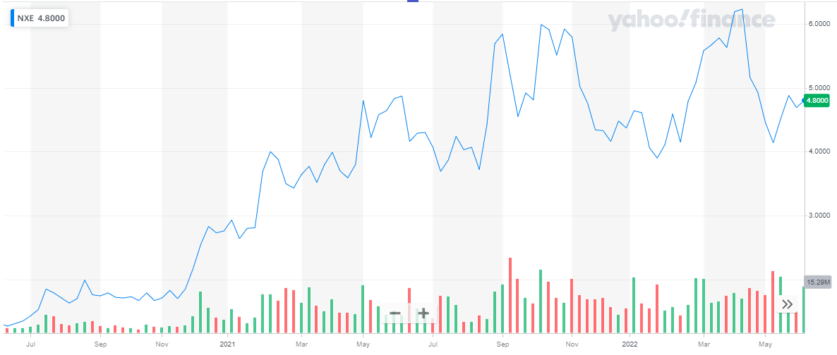 NexGen Energy has a market capitalization of around $ 2.3 billion. Its shares are trading at a price of $ 5.04. The below chart shows the stock performance for the past two years.
