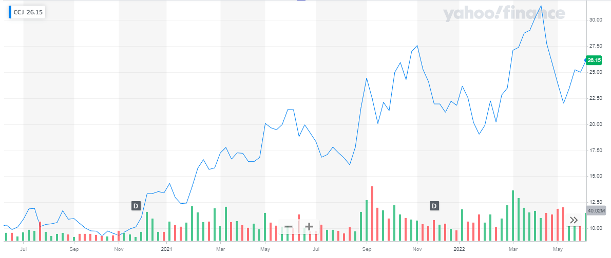 | 1 | Cameco | CCJ | $ 10.4 billion | $ 27.31 |