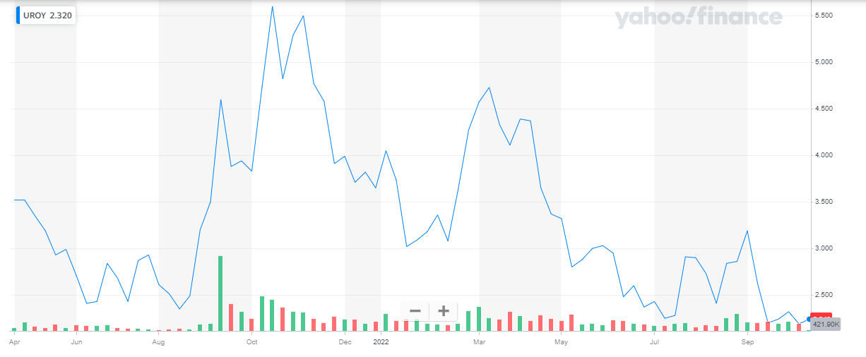 Uranium Royalty Corp has a market cap of $ 225.3 million. Its shares are trading at $ 2.31.
