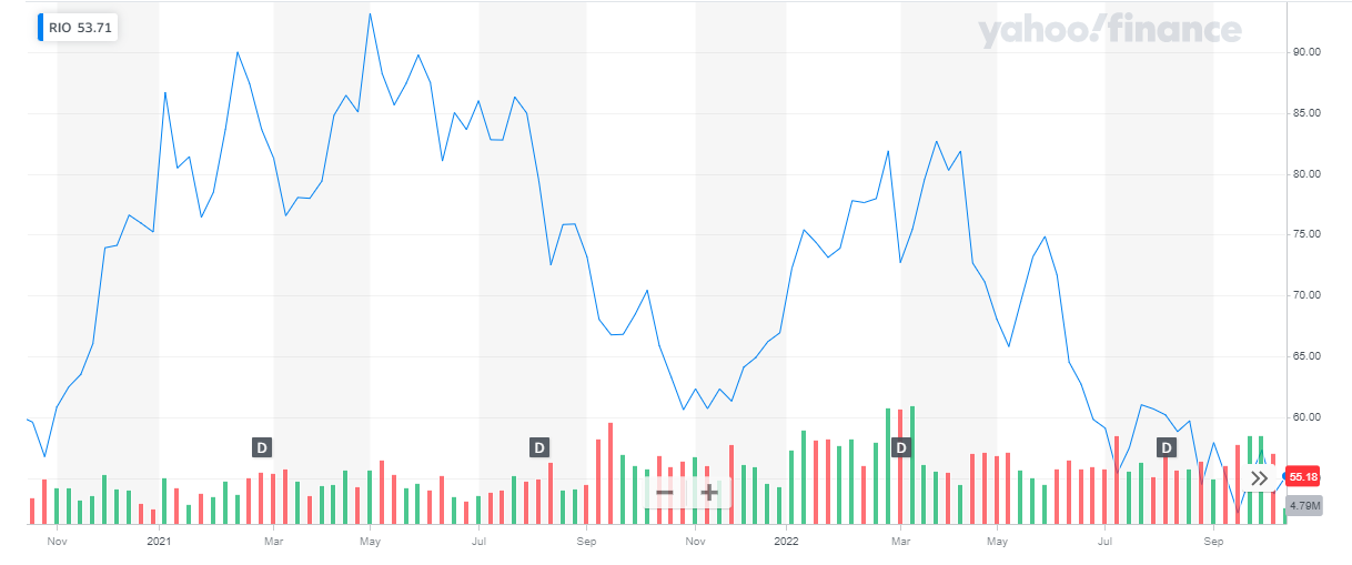 Rio Tinto has a market cap of $ 87.9 billion. Its shares are trading at $ 52.83. The stock has been exhibiting volatile behavior in the past two years.