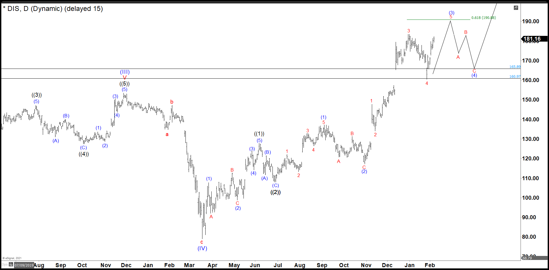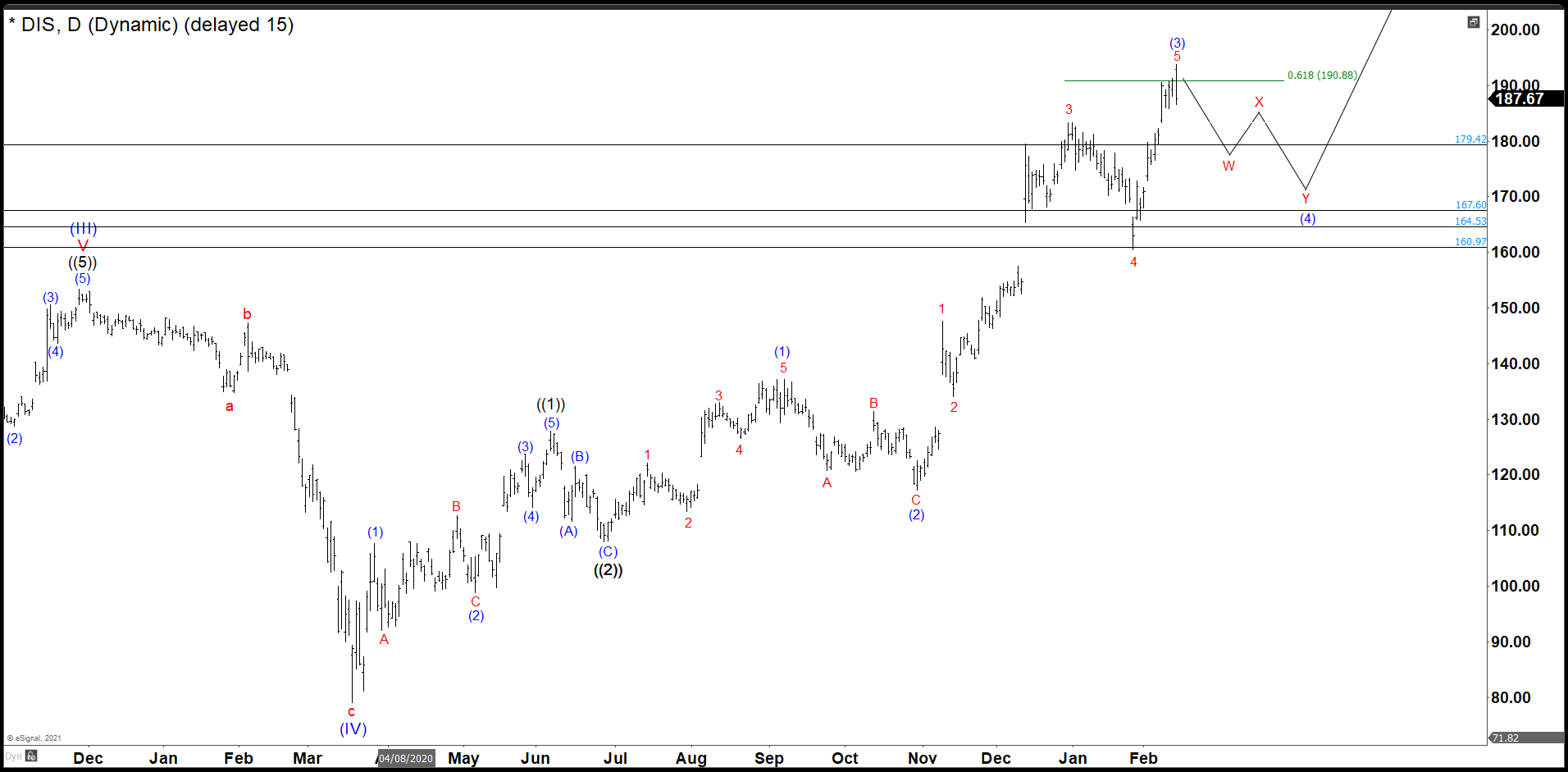 Since the crash of March 2020, all stocks have tried to recover what they lost and Disney was no exception. Disney did not only recover the lost, but It also reached historic highs. Now, we are going to try to build an impulse from the March 2020 lows with a target around $230. Target measured from 0 to 2019’s high projected from March’s low, equal legs.