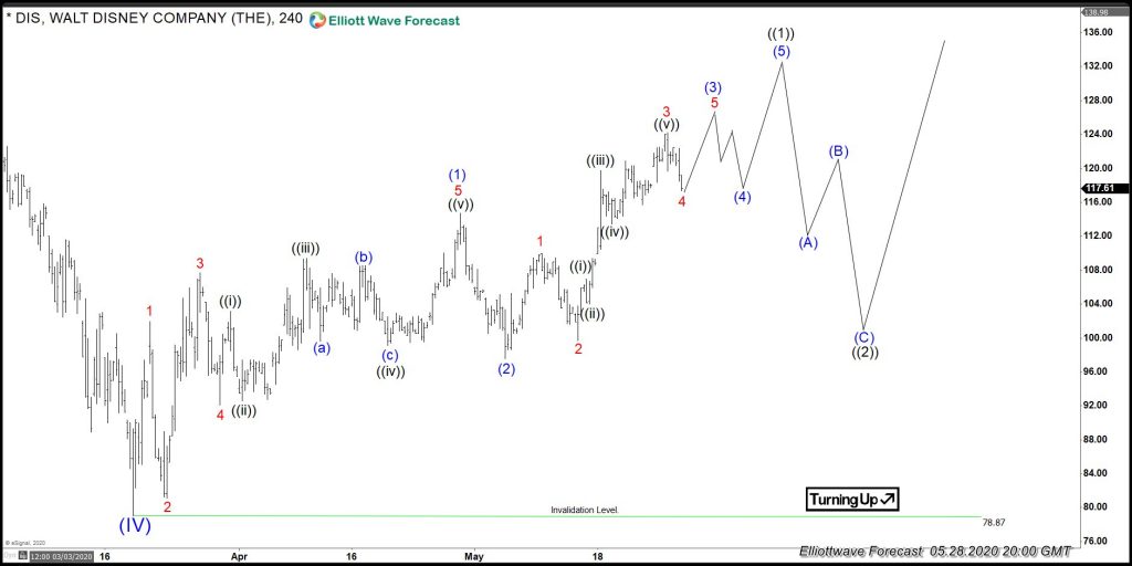 The reaction from the lows at 3.18.2020 so far looks like 3 waves. However, looking at other markets, we should see more upside and possibly create an impulse off the lows. Here is the 4 Hour chart of $DIS showing the idea and proposed path.