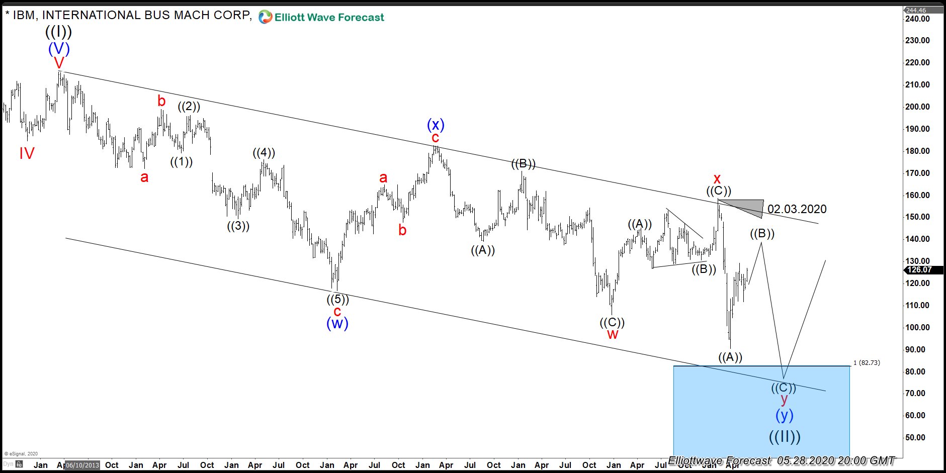 As far as IBM does not reach the blue box, $DIS will be trading sideways in a series of ((1)), ((2)) and then I and II. But when cycle in IBM ends at ((II)), the whole market including Disney will rally.