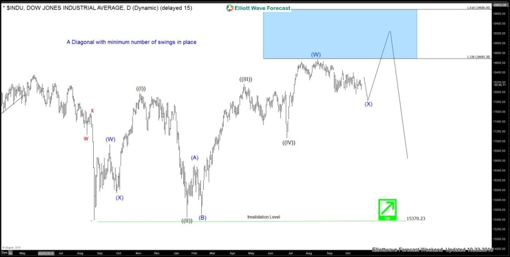 Statistics aren’t destiny and it can’t guarantee what will happen in the future because markets experience regular ups and downs, just like the rest of the economy . You need to Stay focused on the bigger picture to eliminate the noise of fundamentals. Let’s take a look at the daily chart of Dow Jones Industrial Average (US30), Index appears to be doing a diagonal up from 8/24/2015 low which can either make another high to complete or has completed already at 8/15 (18668) peak. We will share the most recent 4 hour chart as well which shows the Index is in a WXY (7 swing) Elliott Wave structure which should ideally complete in 17765 – 17346 area. This is an inflection or an Elliott Wave hedging area and should produce a 3 wave bounce at minimum. As we approach the above mentioned area going into US Elections, we believe regardless of the outcome, a bounce should happen either into a new high to end the diagonal structure and then a larger reaction lower or a 3 wave bounce into a secondary peak and another push lower.