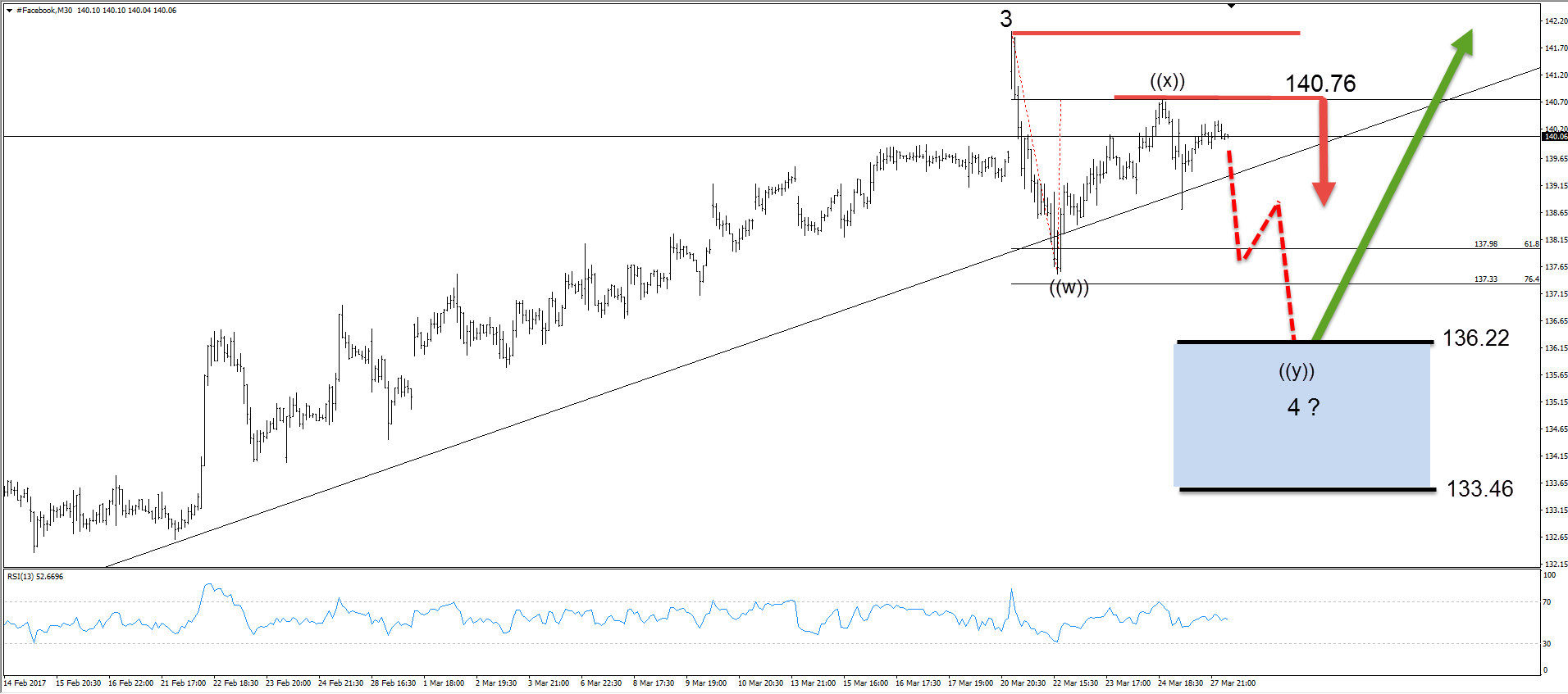 Although a selloff can be seen towards 133.46 – 136.22, selling Facebook now is not an option as that trade would be against the major trend which is bullish. The right strategy is buying the dips in 3,7,11 swings when we get a chance. As of right now we’ll be waiting for the right levels before entering the long side.
