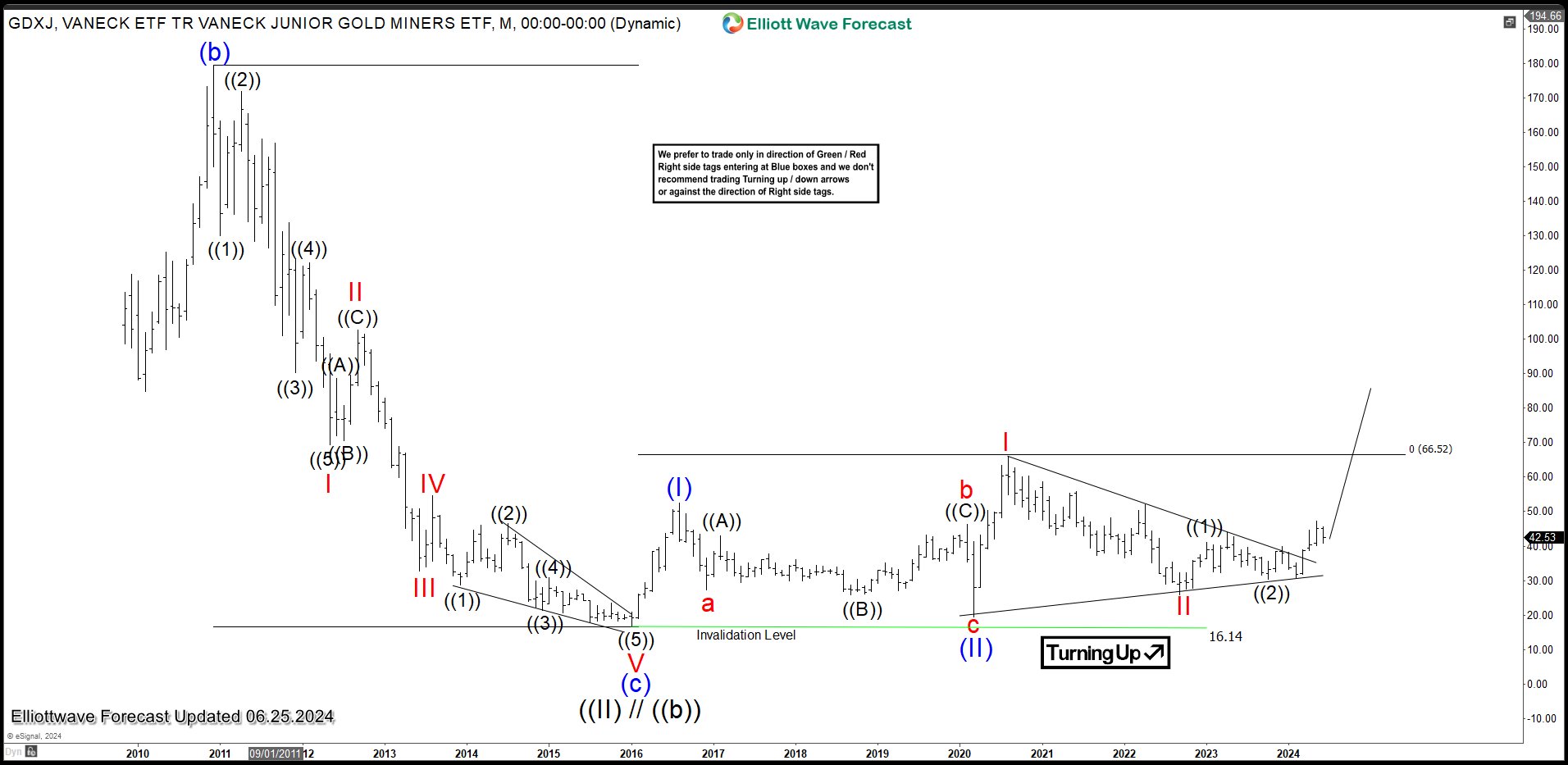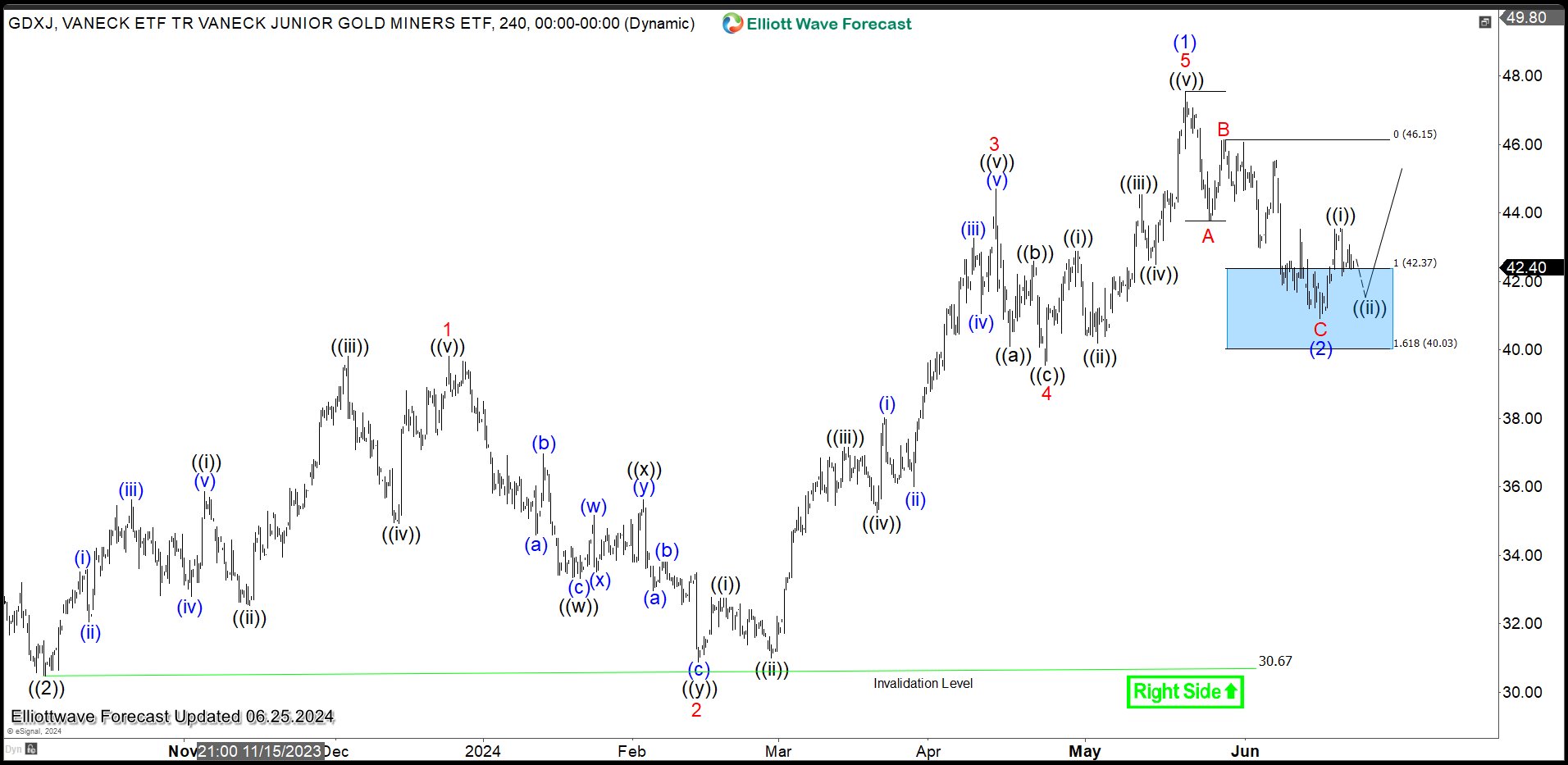 GDXJ, or the VanEck Vectors Junior Gold Miners ETF, is an exchange-traded fund that tracks the performance of small-cap gold mining companies. It provides investors exposure to junior gold mining companies, which are typically smaller and more volatile than their larger counterparts. This ETF offers a convenient way for investors to gain diversified exposure to the junior gold mining sector without having to select individual stocks. Below we update the Elliott Wave outlook for the ETF.