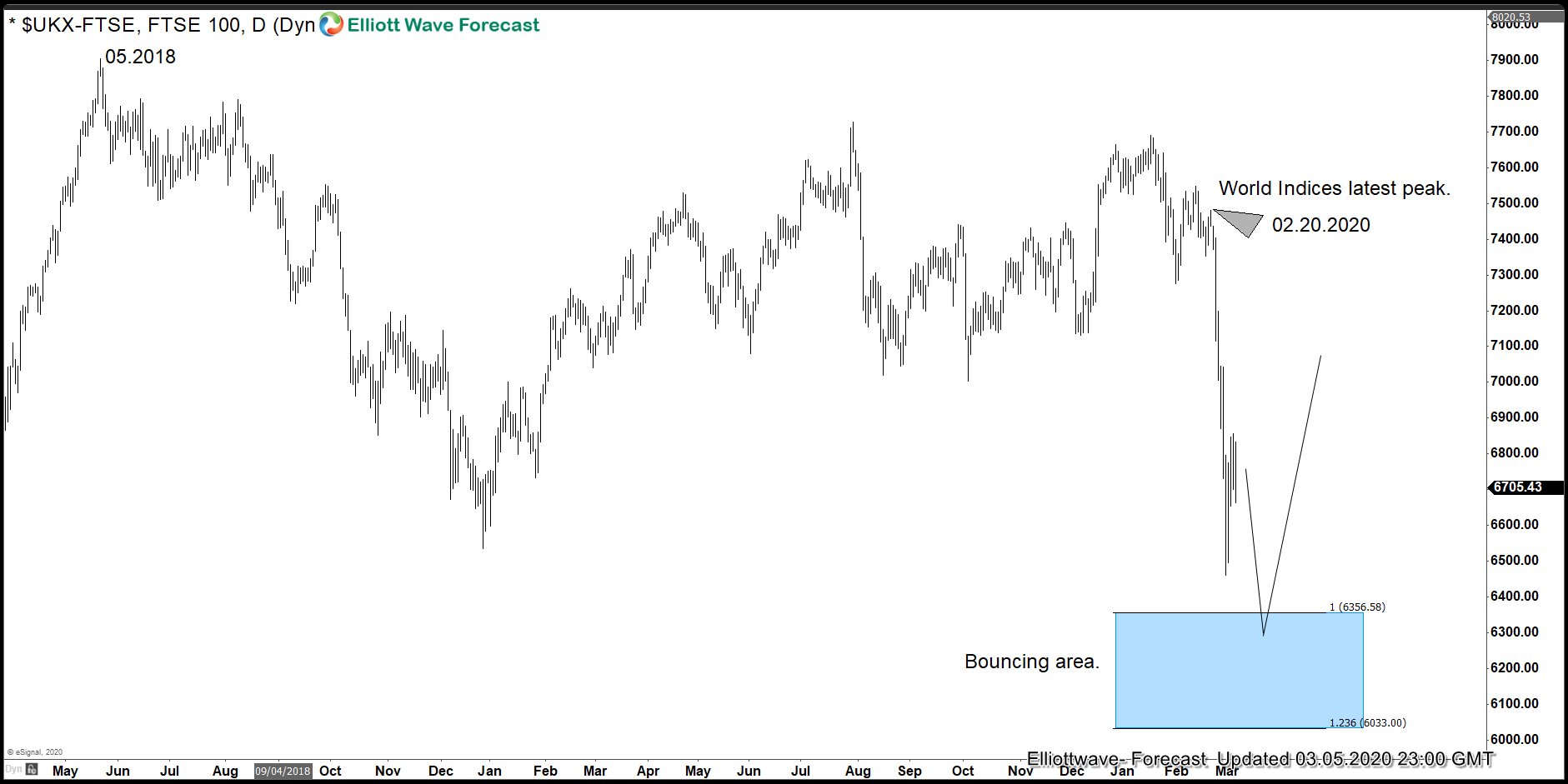 The 2009 cycle is ending across the World Indices. Many Indices show five waves already since the lows, but some have been weak since the previous peak sometimes around 2018. Indices like $FTSE, among others, are reaching the Blue Box area since 2018. The following chart shows the extreme area in $FTSE: