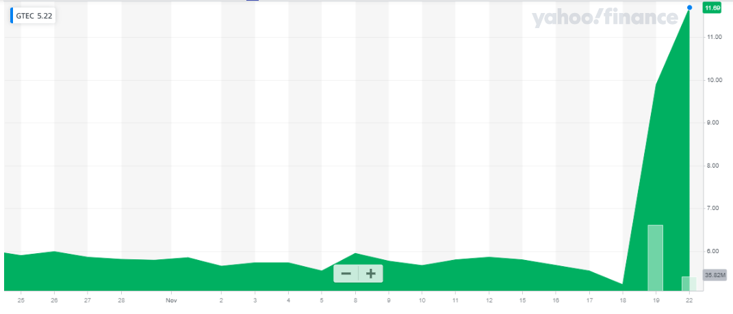 The stock of Greenland has seen extreme jumps in price over the past 30 days. The stock price more than doubled in the last 2 trading days. At the start of the last 30 days, the stock was trading at $5.9 and is currently trading at $11.69.