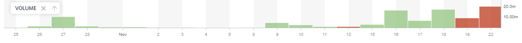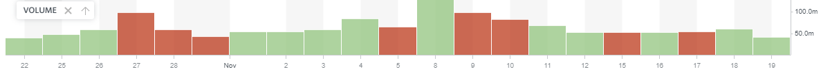 The traded volume over the past month has been pretty volatile. With some days the traded volume crossed 8 million shares within a day. And other days the traded volume was less than 1 million shares.