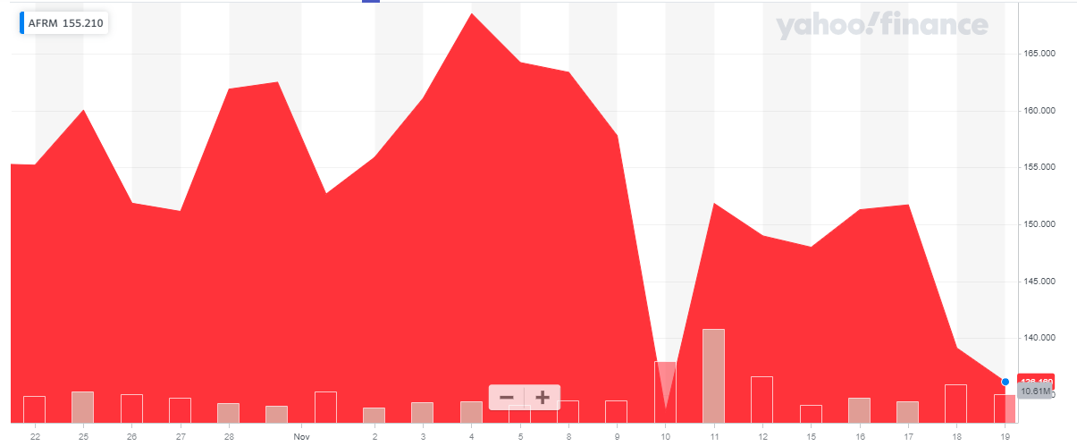 In the past 30 days, the stock of AFRM has been very volatile. It saw a huge dip from $157 to $133 in a single day. At the start of the month, the stock of Affirm Holdings was trading at around $160. And with a reduction of approx. 15% in a month.