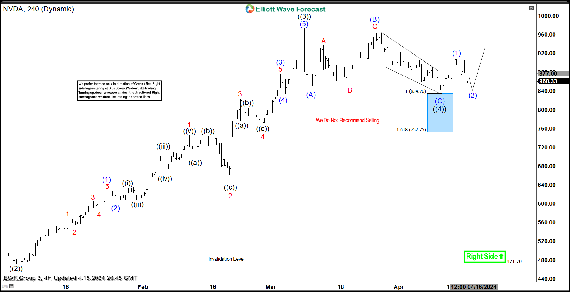 NVDA Latest 4-Hour Elliott Wave Chart From 4.15.2024
