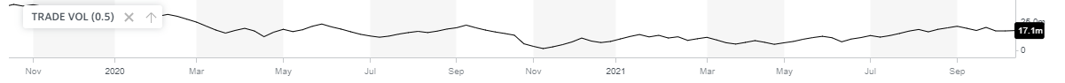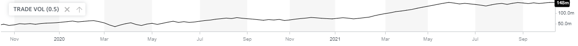 The trade volume index reflects the very high trading volume of the company. The trading volume is in billion over the past two years as shown in the graph below: