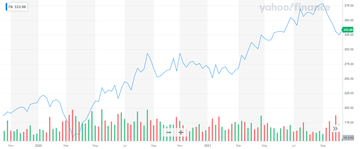 Facebook as a market capitalization of around $943 billion and its share is currently trading at $334.3. The stock of Facebook has spiked tremendously over the past two years. It has been an excellent choice for swing traders to earn profit from the multiple trading pockets as shown in the graph below.