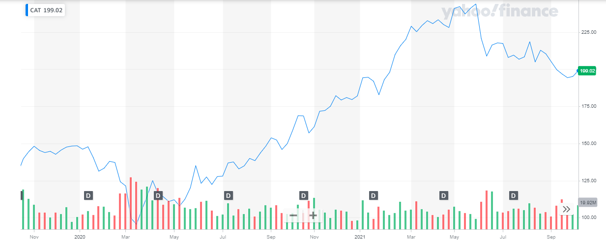 With a market capitalization of around $109 billion, the share of Caterpillar is trading at $199. In its second-quarter report, the company reported a 29% increase in sales, with sales recorded at $12.9 billion. The increase in sales was majorly due to high user demand, favorable impact from changes in dealer inventories, and favorable currency and price realization impacts.