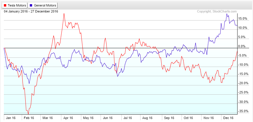 Tesla acquired SolarCity (NSDQ:SCTY) in November and with Tesla’s “Model 3” electric care generating a record-breaking $10 billion worth of pre-orders in just 2 days , the company shares ( NASDAQ:TSLA ) managed to make a +20% move this month . However if we take a look at the year-to-date performance we find out that Tesla is still showing a negative number because of the deep move lower early this year , so if you compare it to the giant General Motors Company (NYSE:GM) you will make a conclusion that it was a better investment even with just a +12% gain this year .