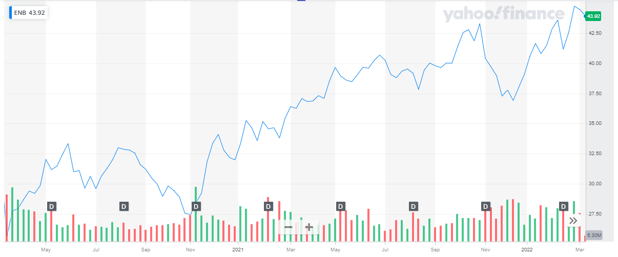 Enbridge has a market cap of $ 84.3 billion. Its shares are trading at $ 41.31.