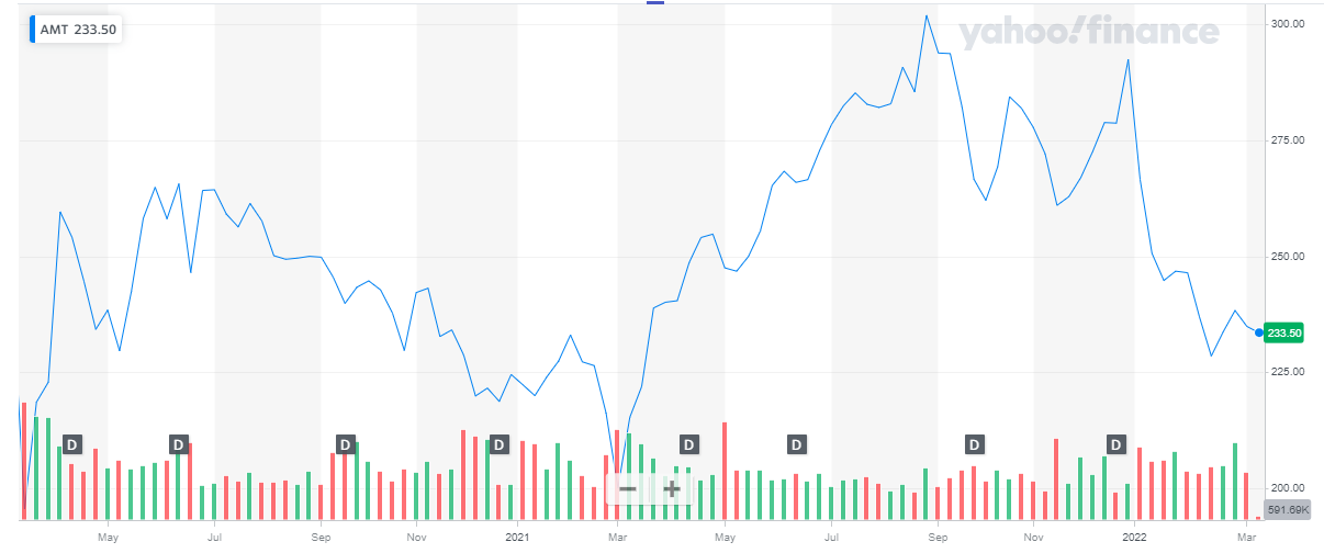 American Tower has a market capitalization of around $106 billion. The share of the company is currently trading at a price of $233.5. the company’s stock is on a bullish run for more than two years. Despite multiple dips, the stock did not lose its bullish run.