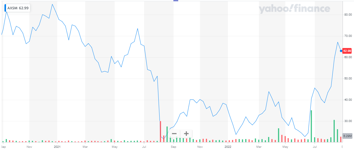 Axsome Therapeutics has a market capitalization of $ 2.7 billion. Its share is currently trading at a price of $ 62.99.