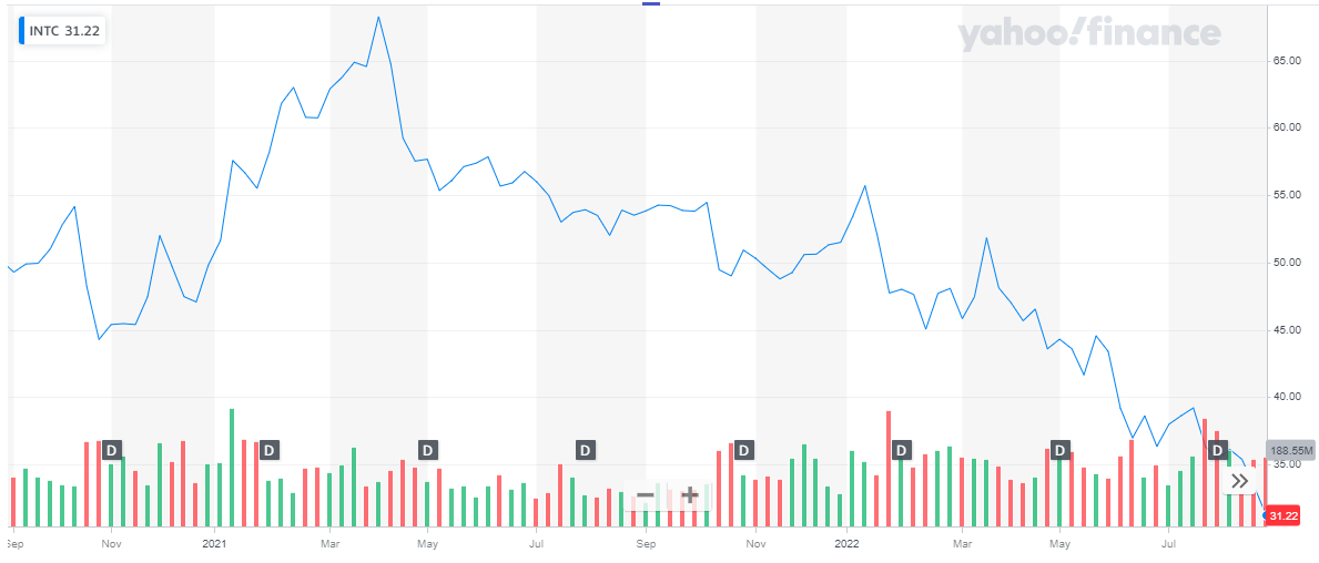 Intel has a market capitalization of $ 128.2 billion. Its share is trading at a price of $ 31.22.