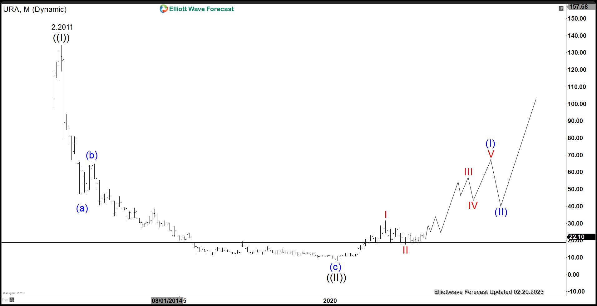 $URA Elliott Wave Chart Monthly Chart