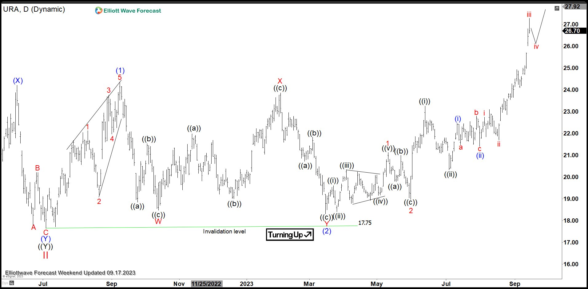 $URA Daily Elliott Wave Chart