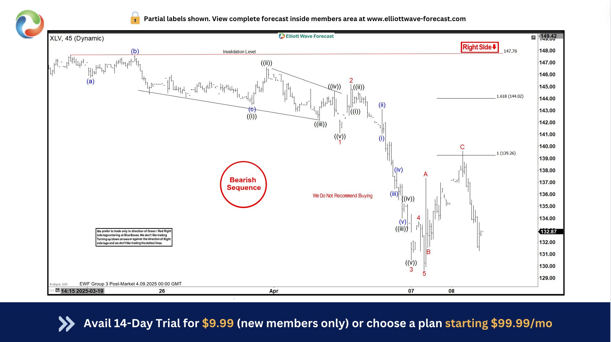 XLV Elliott Wave : Double Reaction from Equal Legs Zone