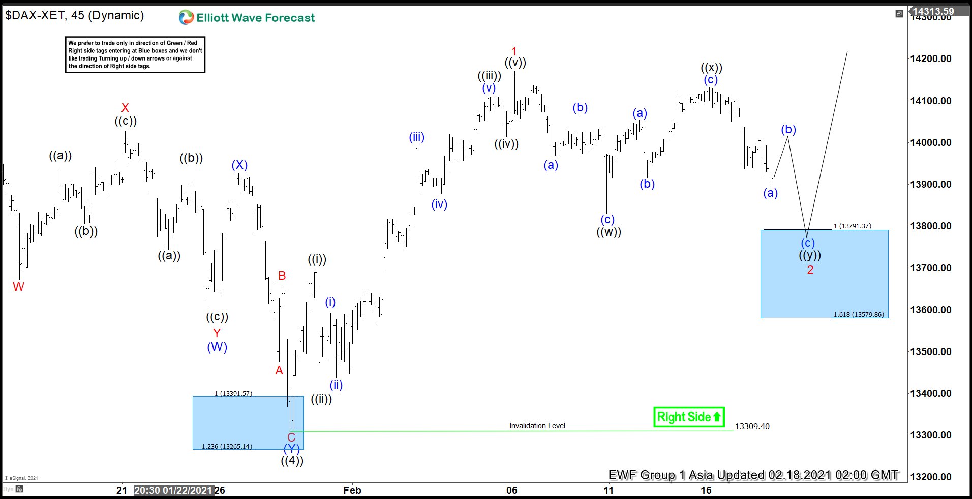 DAX 1 hourly Elliott Wave chart on 2/24/2021
