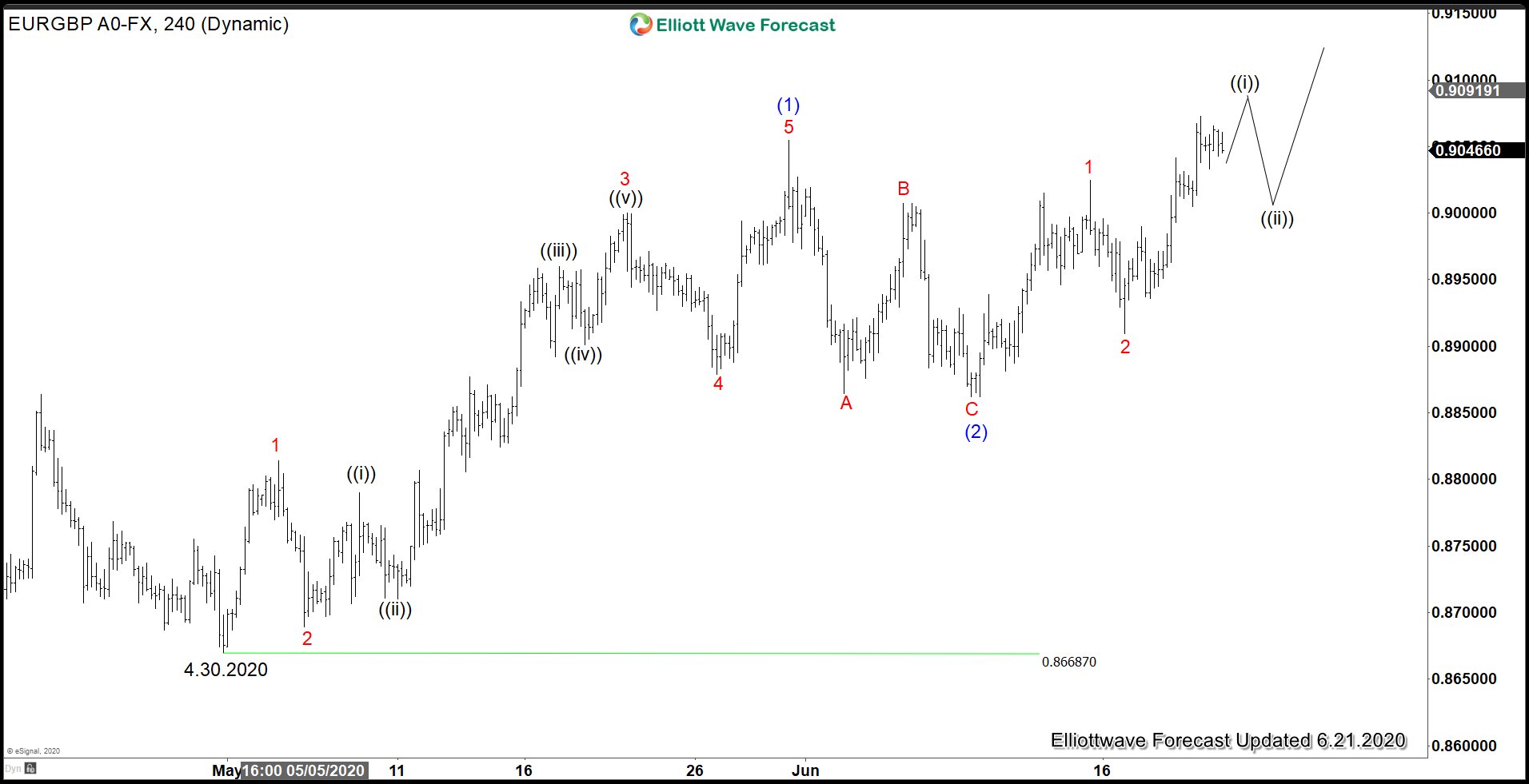 EURGBP 7.6.2020 1 Hour NY Midday Elliott Wave Update