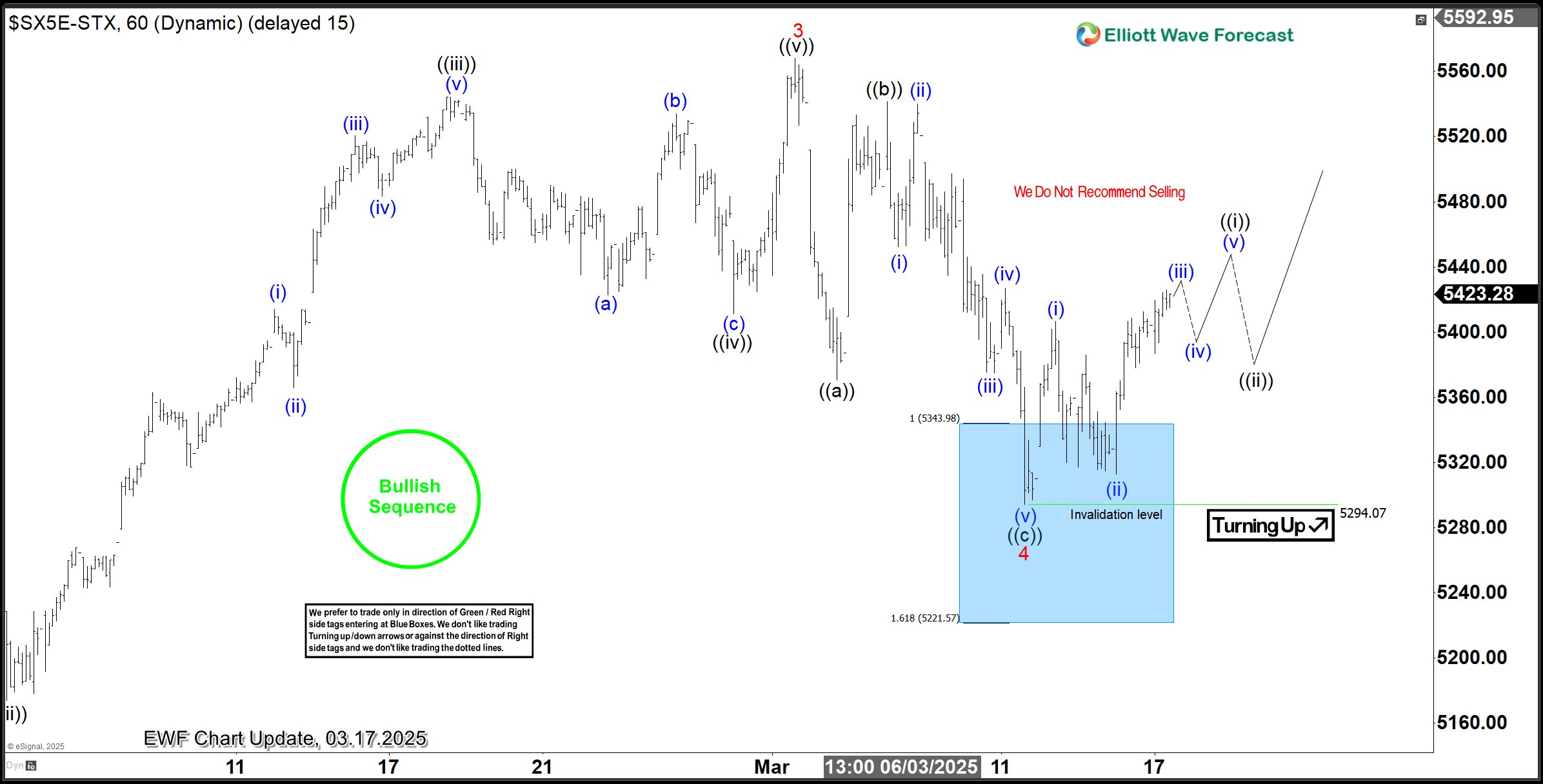 EUROSTOXX (SX5E) Latest 1-Hour Elliott Wave Chart From 7.15.2025
