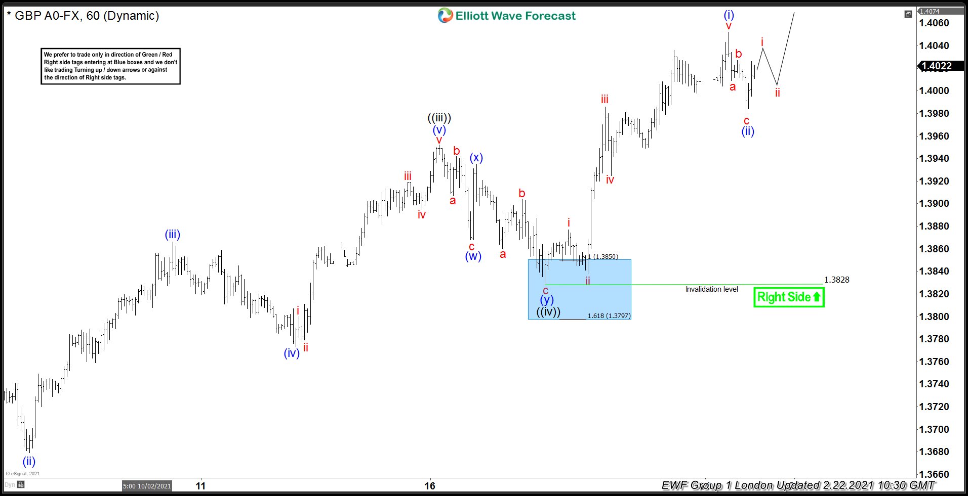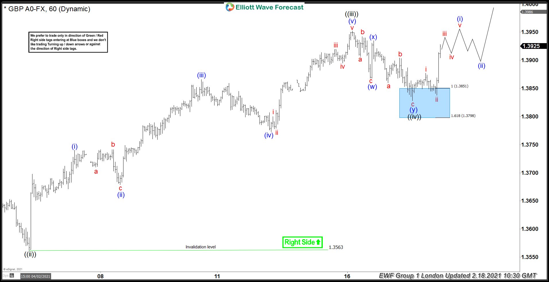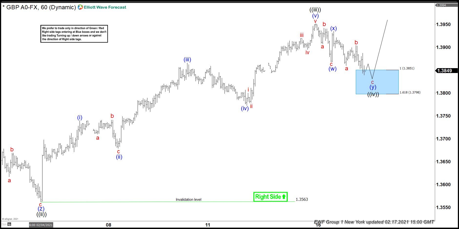 Short Term Elliott Wave View on GBPUSD suggests the rally to 1.4239 ended wave ((W)). Pair is now correcting in wave ((X)) in a larger 3, 7, or 11 swing pullback. Internal of wave ((X)) is proposed to be unfolding as a zigzag Elliott Wave structure. Zigzag is a 5-3-5 structure where wave A and C subdivide into a 5 waves either as impulse or diagonal. Down from wave ((W)), wave 1 ended at 1.408 and bounce in wave 2 ended at 1.4182.