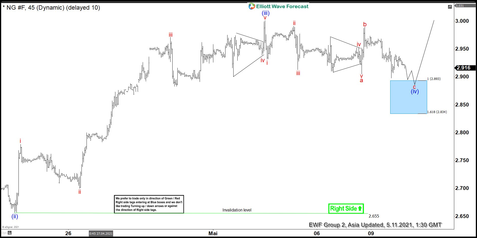 Elliott Wave 1 hour chart for Natrual Gas dated 5/11/2021