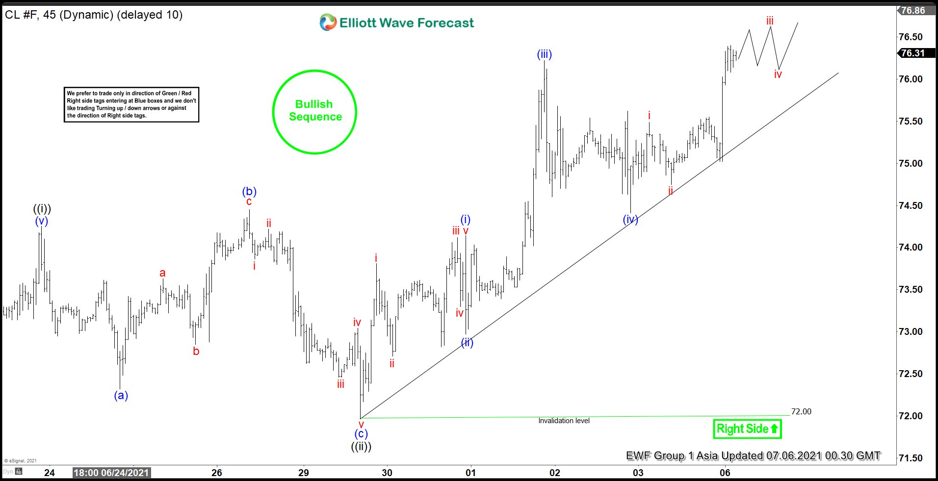 On 08/01/2024, we updated the shorter cycles for our members with the chart above. Wave 1 had finished, and wave 2 had begun. Currently, the price has completed wave ((a)) of 2 and is now in ((b)) of 2. Wave ((b)) should be corrective and form a 3- or 7-swing structure. If the current decline stays above 74.55, then one more leg higher should occur for ((c)) of 2. At the extreme of wave ((c)) of 2, the decline should resume unless a breach of 84.57 happens. Traders can look for SHORT opportunities from this extreme. We always highlight the extreme for our members and reveal opportunities with the blue box.