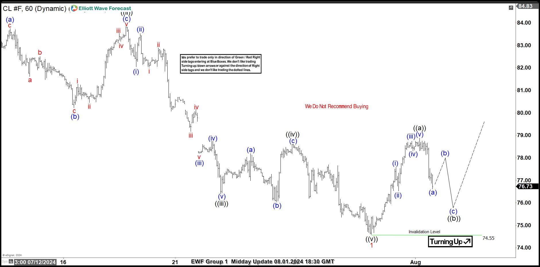 WTI Oil (CL) 1-Hour Chart – 08/01/2024